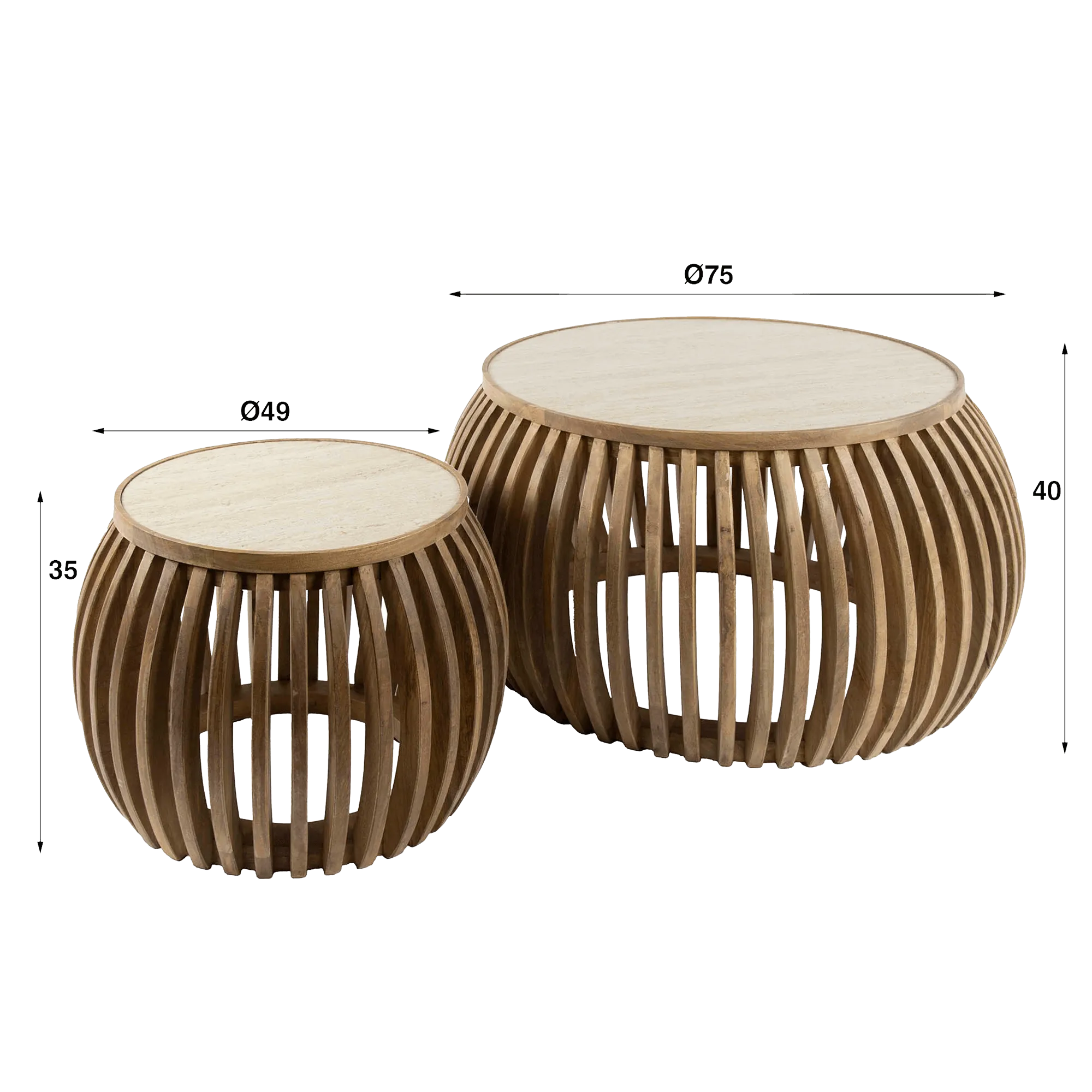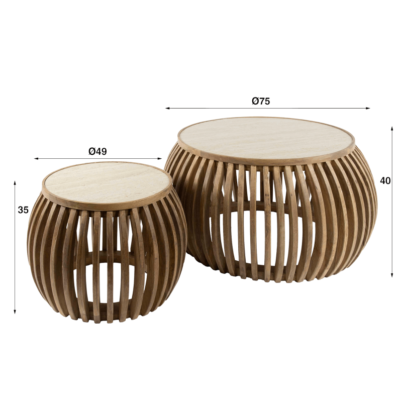 Set van 2 ronde salontafels in mangohout met keramisch blad – Nuovo Set van 2 ronde salontafels in mangohout met keramisch blad – Nuovo 75/49 x 75/49 x 40/35 cm