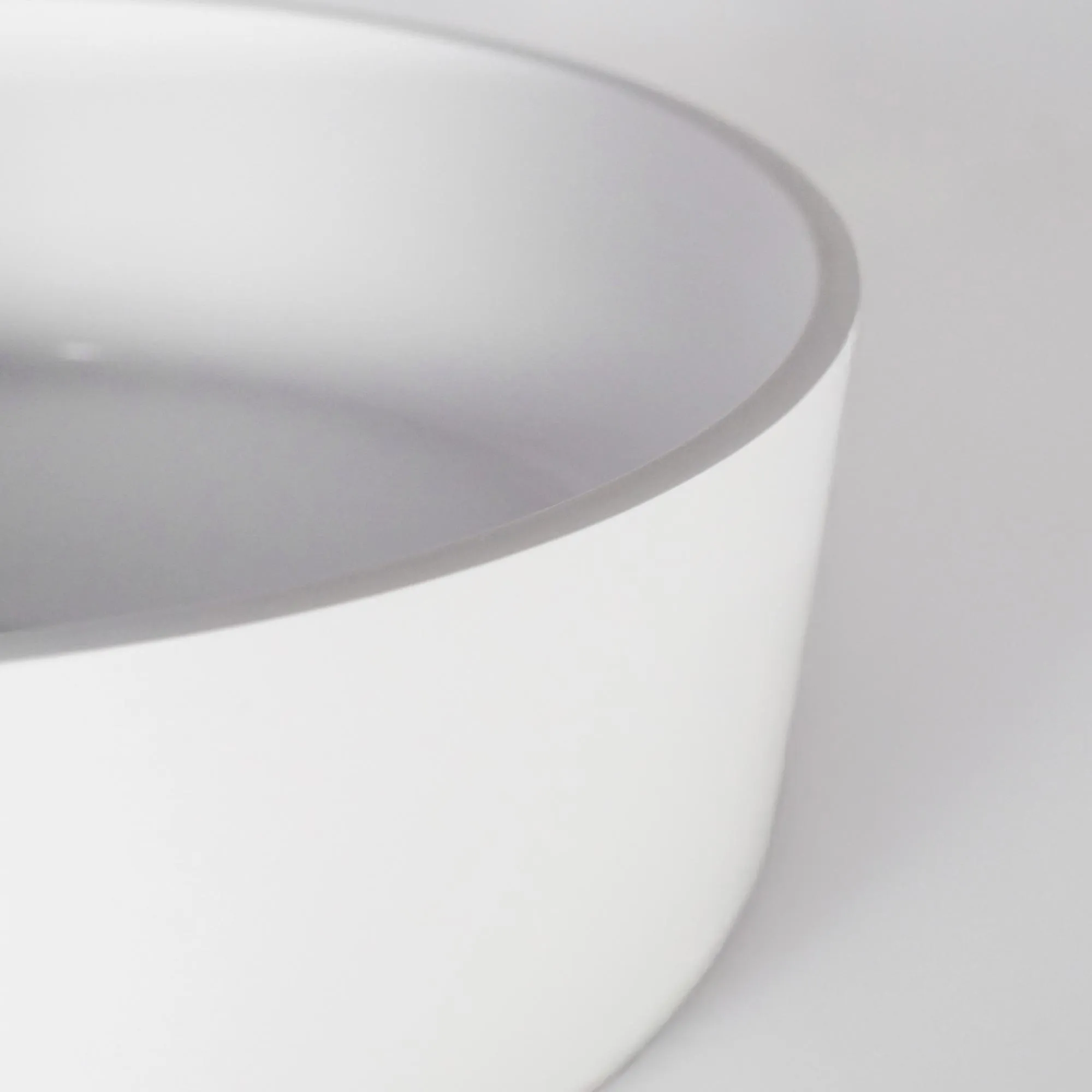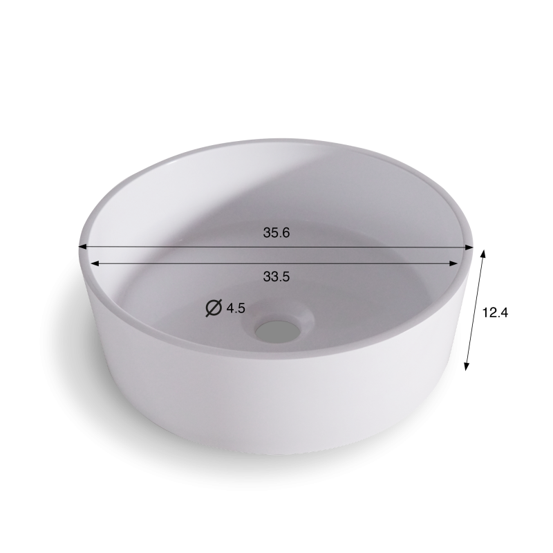 Voor het vervaardigen van deze ronde keramische waskom in mat wit kozen we voor hoogwaardig keramiek, zorgvuldig bewerkt om een mat oppervlak te verkrijgen dat zowel voor het oog als voor de aanraking zacht aanvoelt. Deze mat witte afwerking brengt een subtiele warmte en een rustgevende uitstraling die het licht op een delicate manier vangt. Bij zijlicht ontstaan lichte nuances die de regelmatige ronding van de wand extra benadrukken. Met een buitendiameter van 35,6 cm en een hoogte van 12,4 cm biedt ze een aangename balans tussen compactheid en dagelijks gebruiksgemak.