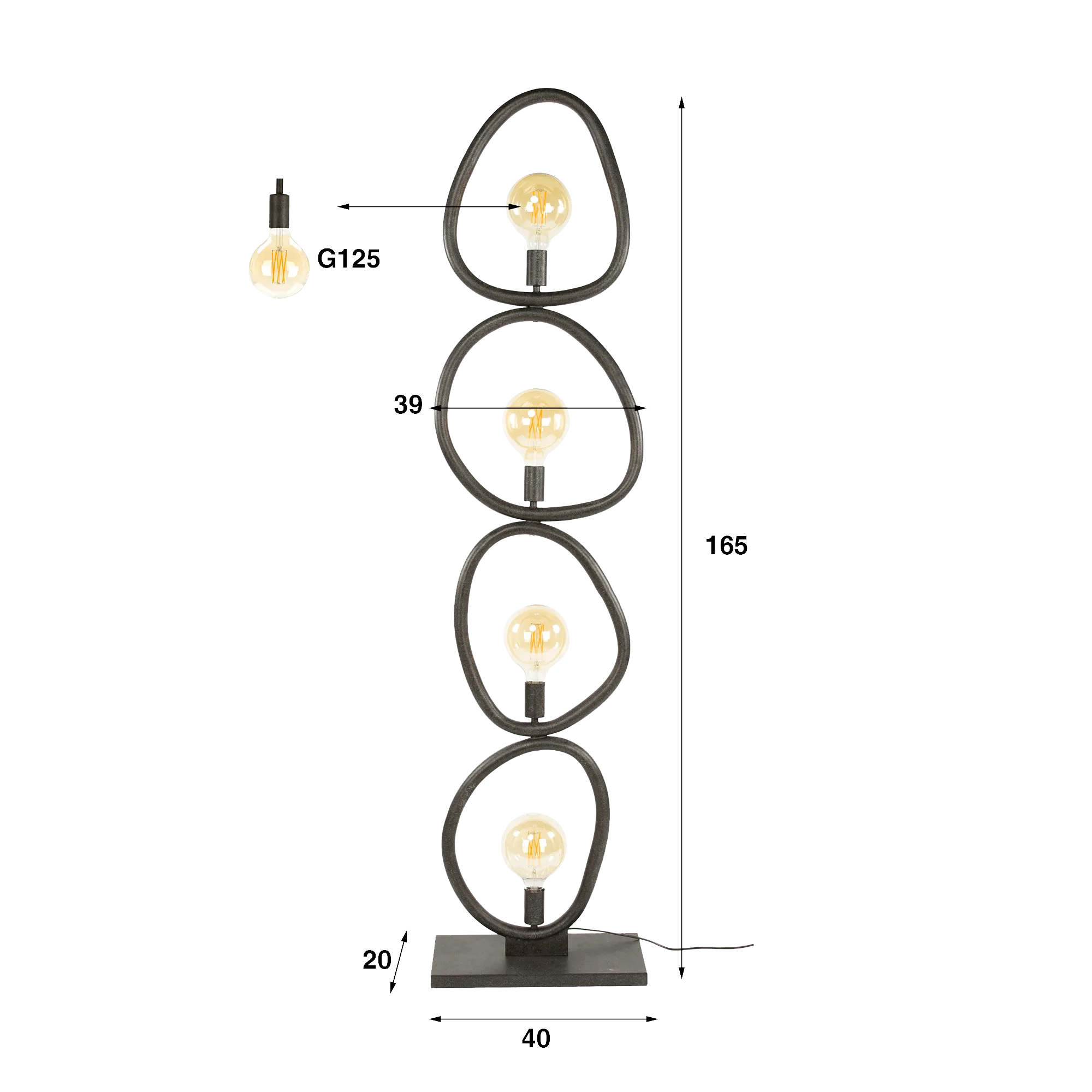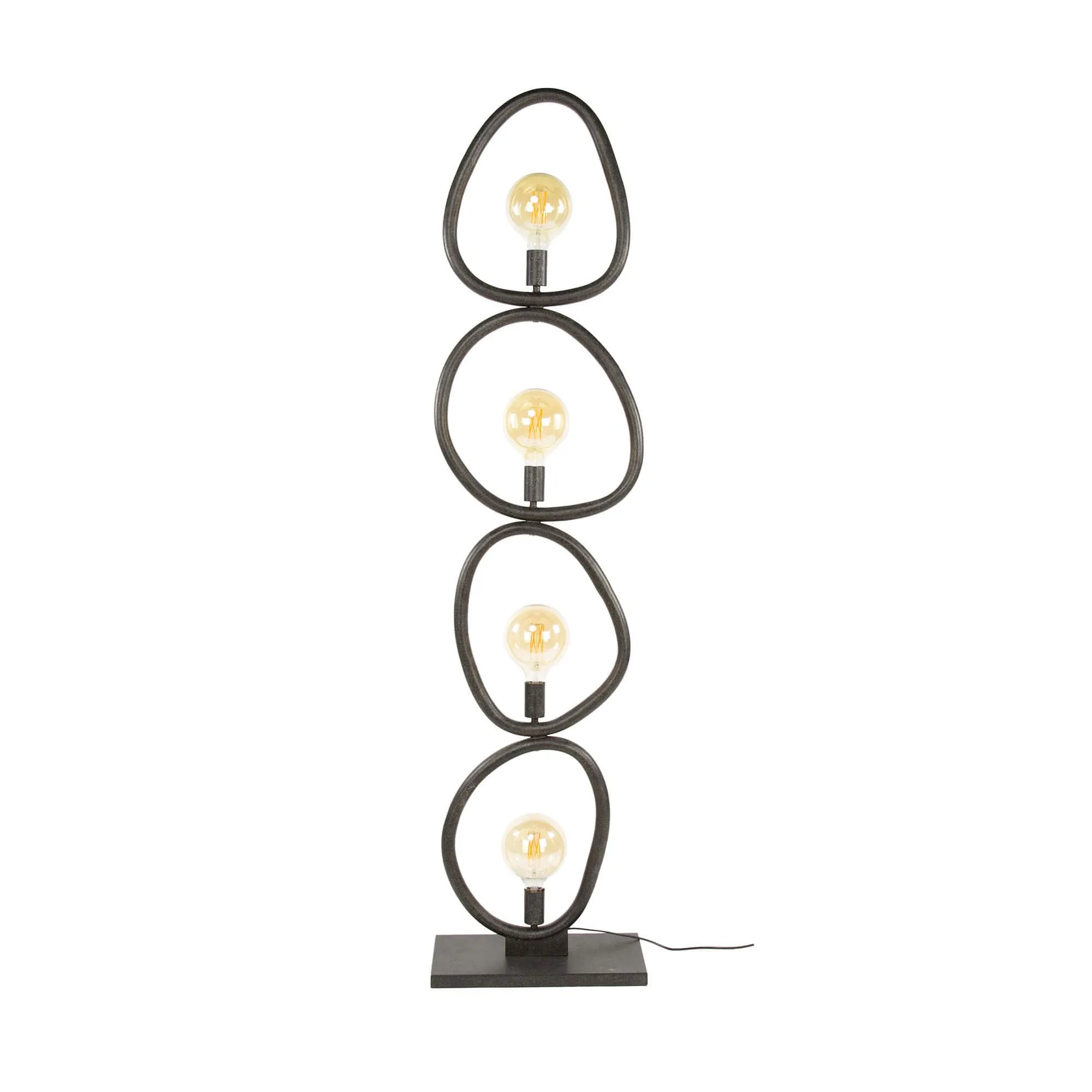 Ontworpen in de geest van onze stukken die het meest gevoelig zijn voor natuurlijke vormen, vertaalt de design vloerlamp in zwart metaal Solin onze wens om een verlichting te creëren die met de ruimte in dialoog gaat in plaats van ze gewoon te verlichten. Onze ontwerpers werkten rond onregelmatige rondingen, geïnspireerd op door de tijd gepolijste kiezelstenen, om een structuur in zwart metaal te bedenken die lijkt alsof ze in één enkele beweging werd getekend. Deze 165 cm hoge silhouet bestaat uit vier ringen met opzettelijk onvolmaakte contouren die elk een lichtbron dragen, met een onderlinge afstand van ongeveer 39 cm, om een zachte en rustgevende verticale ritmiek te creëren.
