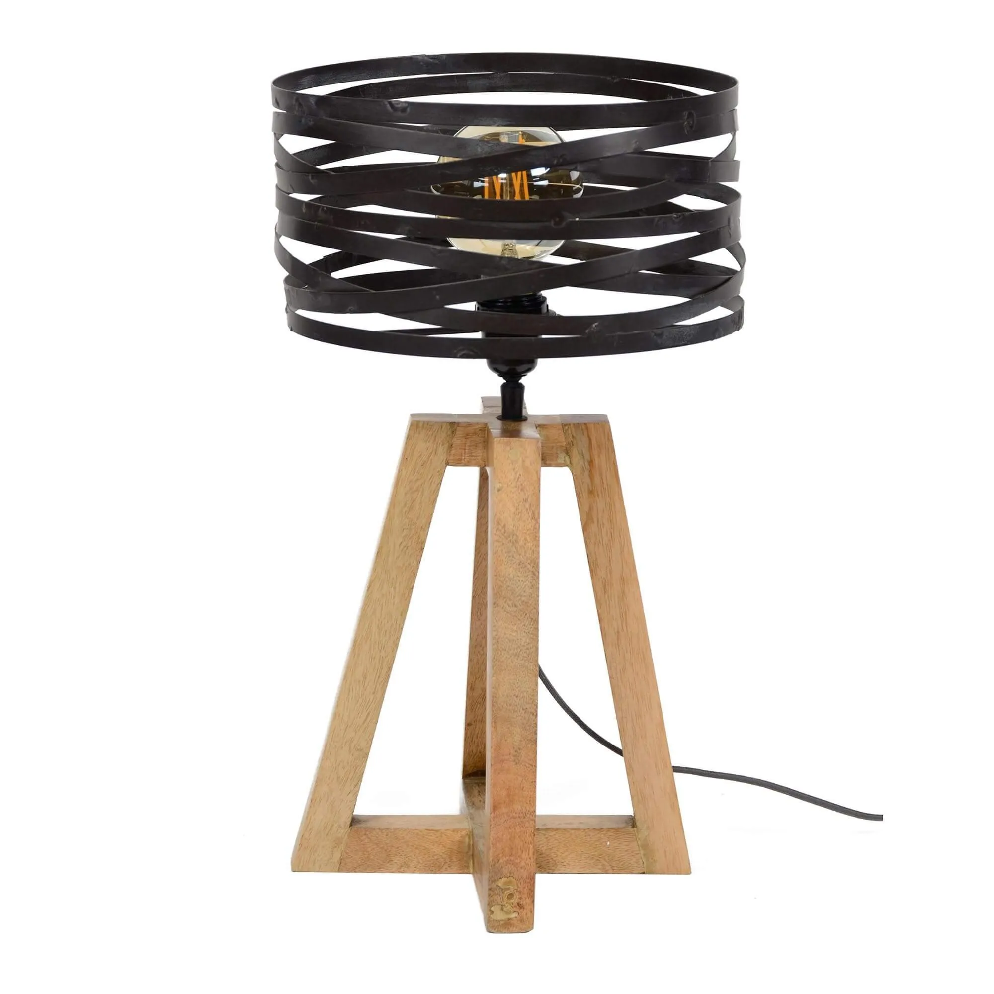 Industriële bureaulamp in hout met gedraaide metalen lampenkap – Twist