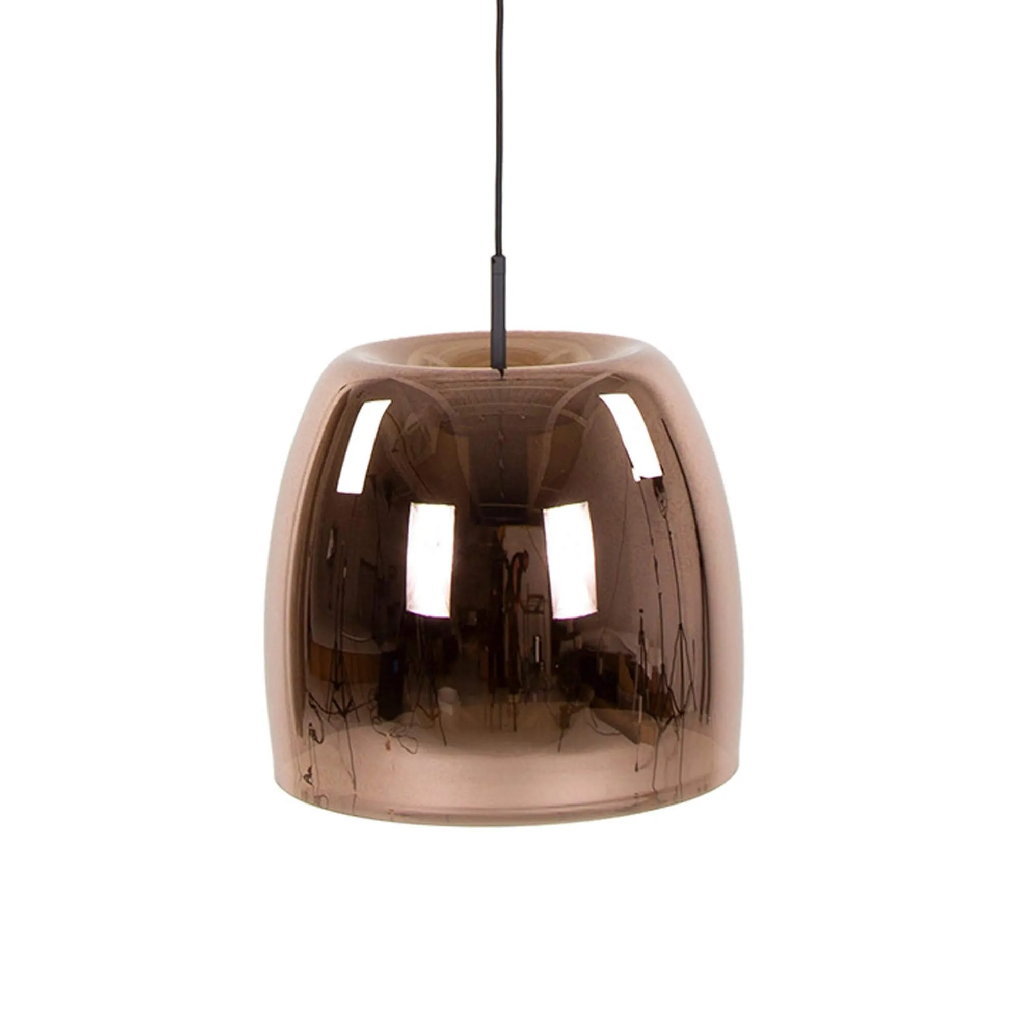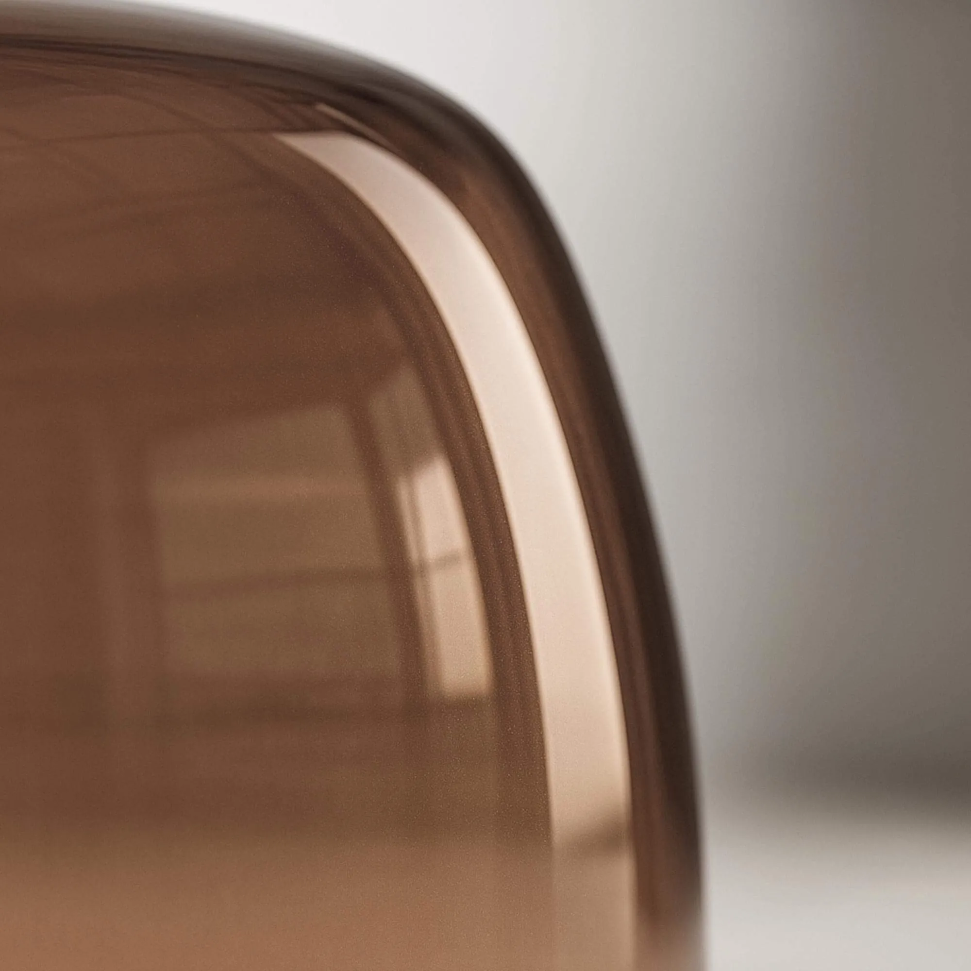 In onze Opala-collectie ontwierpen we deze hanglamp met een koperglazen kap, die met het licht speelt alsof het een levend materiaal is. Dit model in koperglas ontstond uit onze wens om een stuk te creëren dat de sfeer van een ruimte onmiddellijk kan transformeren, met een zachte warmte en een eigentijdse gloed. De ronde vorm met zijn zachte lijnen leidt subtiel de blik en voegt een duidelijke aanwezigheid toe zonder de ruimte te overheersen.