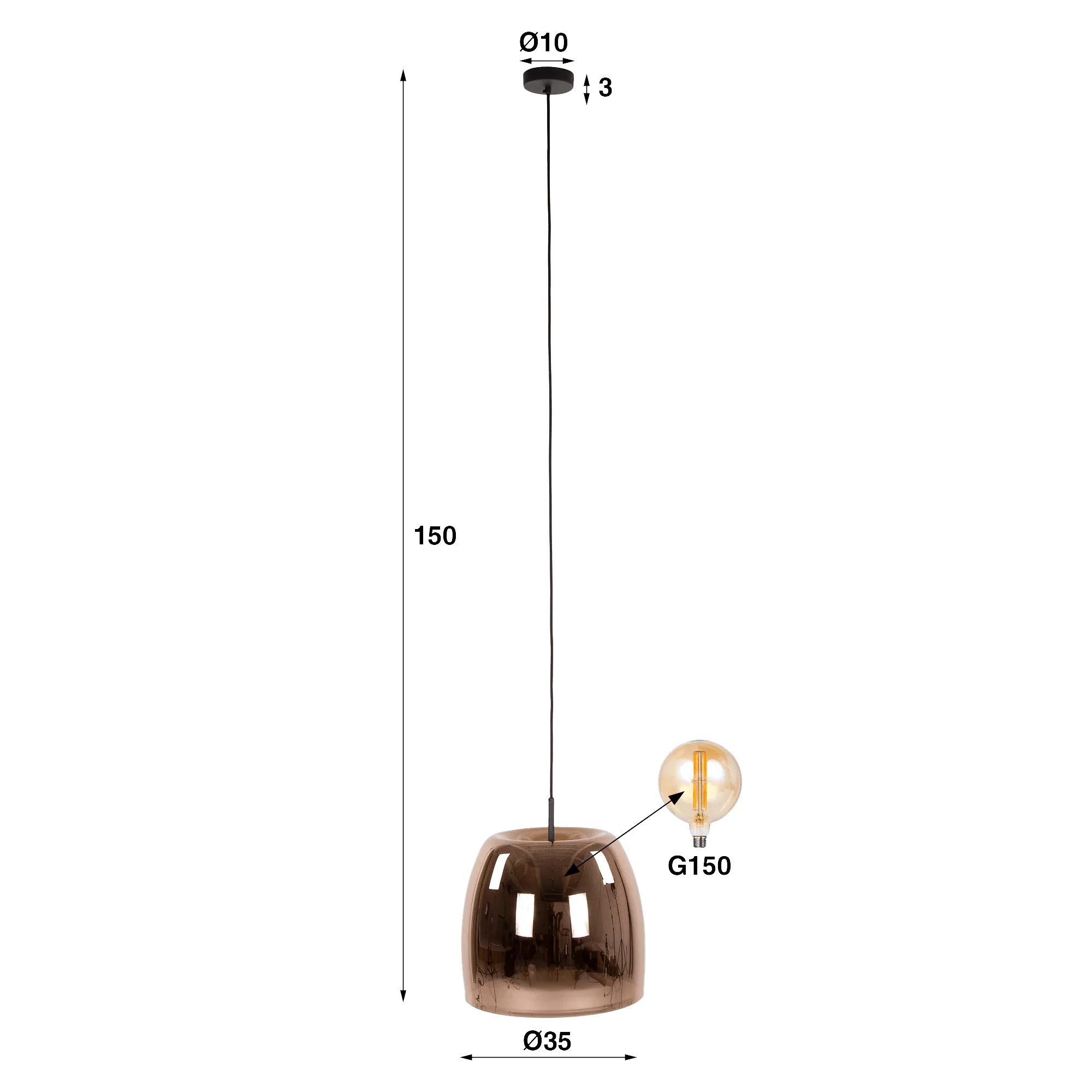 We wilden dat deze hanglamp met koperglazen kap zich eenvoudig zou integreren in een moderne of stedelijke inrichting, terwijl ze tegelijk een warme en verfijnde toets toevoegt. De ambachtelijke vervaardiging versterkt haar karakter: elk stuk geblazen glas vertoont een eigen finesse, wat de lamp een authentieke charme geeft. De keuze voor een G150-lamp (niet inbegrepen) met filament versterkt het gevoel van intimiteit en gezelligheid. Ons team is bijzonder trots op de manier waarop het koper reageert op natuurlijk licht en doorheen de dag steeds veranderende nuances onthult.