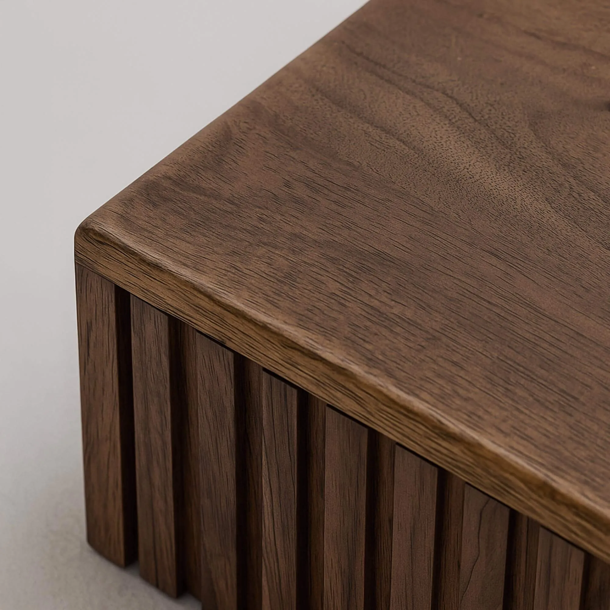 Vervaardigd uit massief hout, onthult het hangende Nest-nachtkastje in acaciahout een dichte en genuanceerde nerf, zorgvuldig bewerkt om de rijkdom van deze houtsoort volledig tot uiting te laten komen. De aanraking is zacht, het oppervlak warm, en elke houttekening vertelt het verhaal van het hout. Aan de voorzijde onderscheidt de lade zich door een fijn verticaal reliëf, subtiel gesculpteerd om het licht te vangen en ritme te geven aan het geheel zonder de lijn te verzwaren. Deze uitgesproken maar beheerste aanwezigheid blijft trouw aan de essentiële en natuurlijke inspiratie van onze meubels.