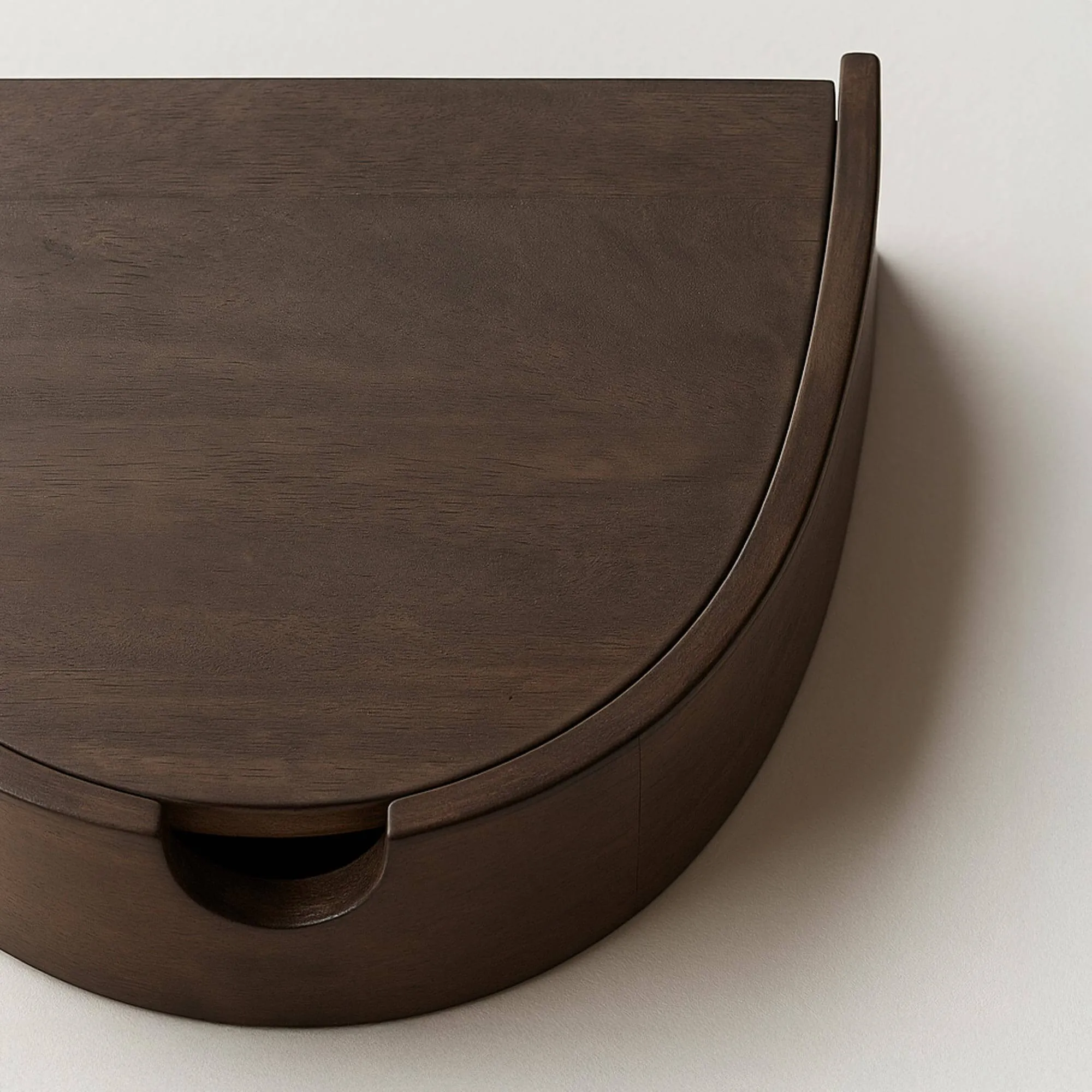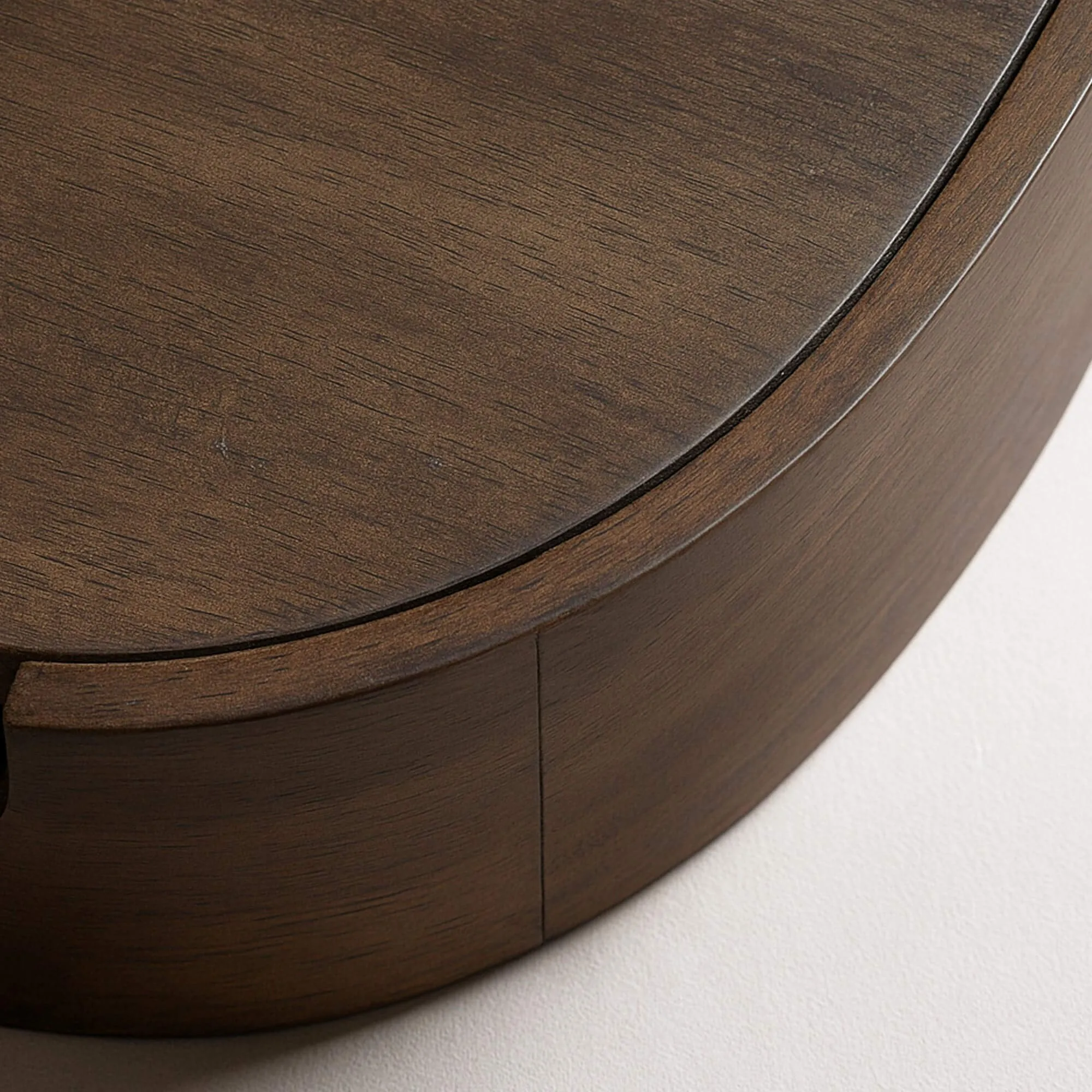 Vervaardigd uit massief acaciahout, onthult het zwevende nachtkastje Nocte de volledige rijkdom van deze houtsoort: een levendige nerf, warme nuances en een bruine tint met diepte die het licht subtiel opvangt. Het hout wordt zorgvuldig bewerkt en met aandacht afgewerkt om een glad en aangenaam oppervlak te bieden, terwijl de natuurlijke variaties zichtbaar blijven die elk stuk uniek maken. We zijn bijzonder trots op de kwaliteit van de assemblage en de precisie van de rondingen, die getuigen van een beheerst ambachtelijk vakmanschap.