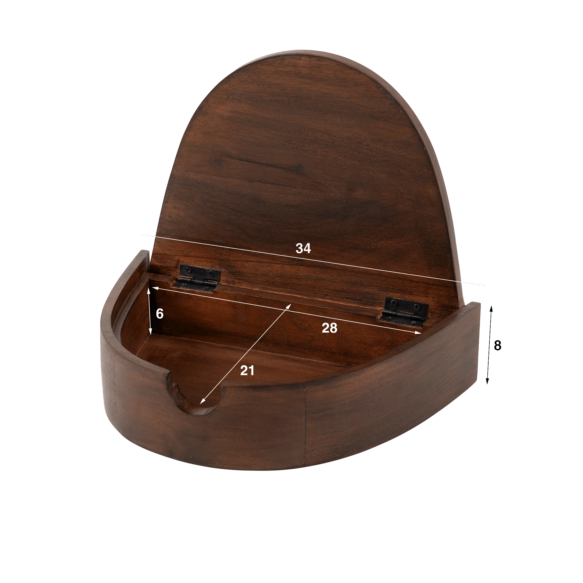 Ontworpen om rustige nachten en sobere interieurs te begeleiden, belichaamt het zwevende nachtkastje in massief acaciahout Nocte (set van 2) onze visie op meubelen die tegelijk discreet, expressief en diep functioneel zijn. Vanaf de eerste schetsen wilden onze ontwerpers een meubel creëren dat de ruimte visueel verlicht en toch een duidelijke aanwezigheid behoudt, dankzij een zachte en omhullende silhouet, geïnspireerd door natuurlijke vormen en etnisch vakmanschap.