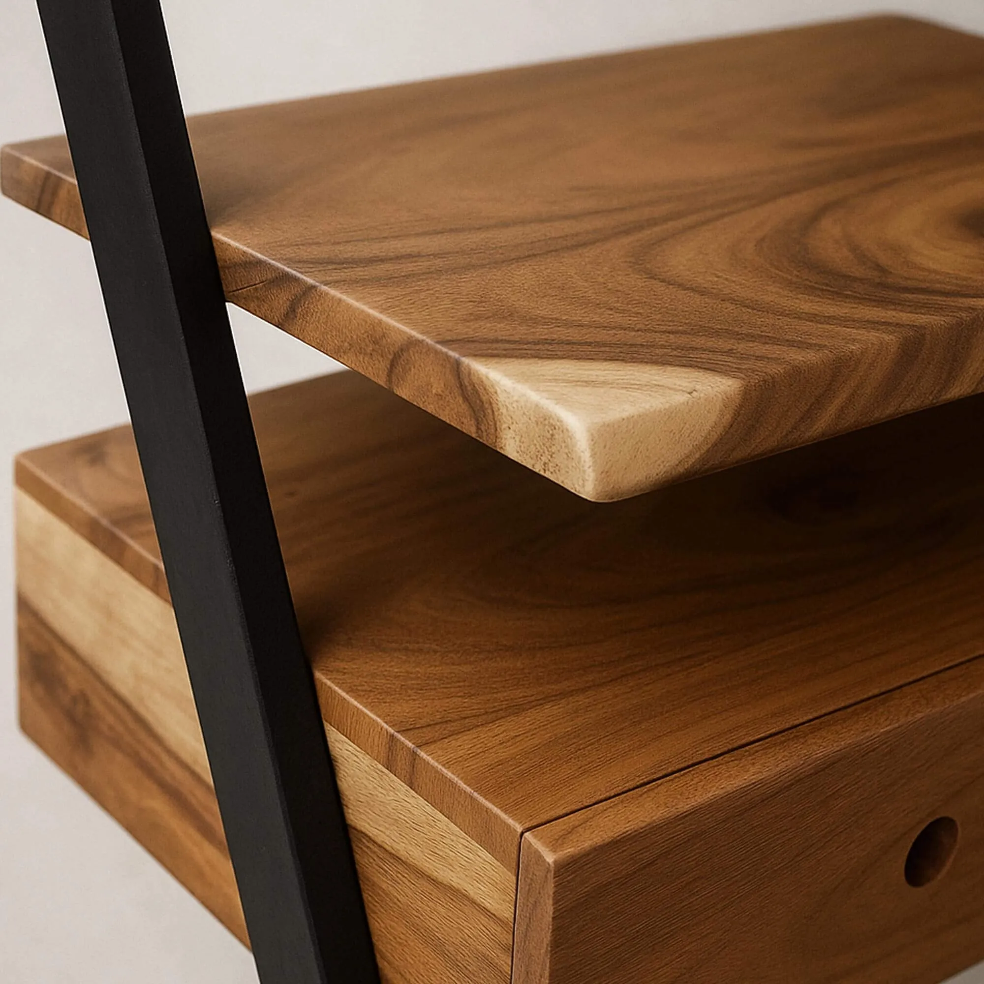 Ontworpen als een evenwichtige combinatie van industriële strakheid en natuurlijke warmte, belichaamt het nachtkastje in massief acaciahout Lean onze visie op dagelijks meubilair: functioneel, oprecht en vol karakter. Al vanaf de eerste schetsen zochten onze ontwerpers naar een lichte maar uitgesproken uitstraling, die de ruimte structureert zonder ze te verzwaren.