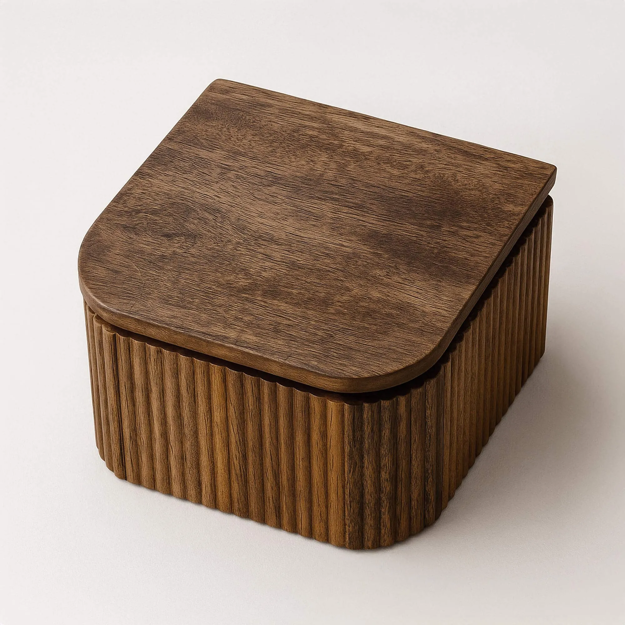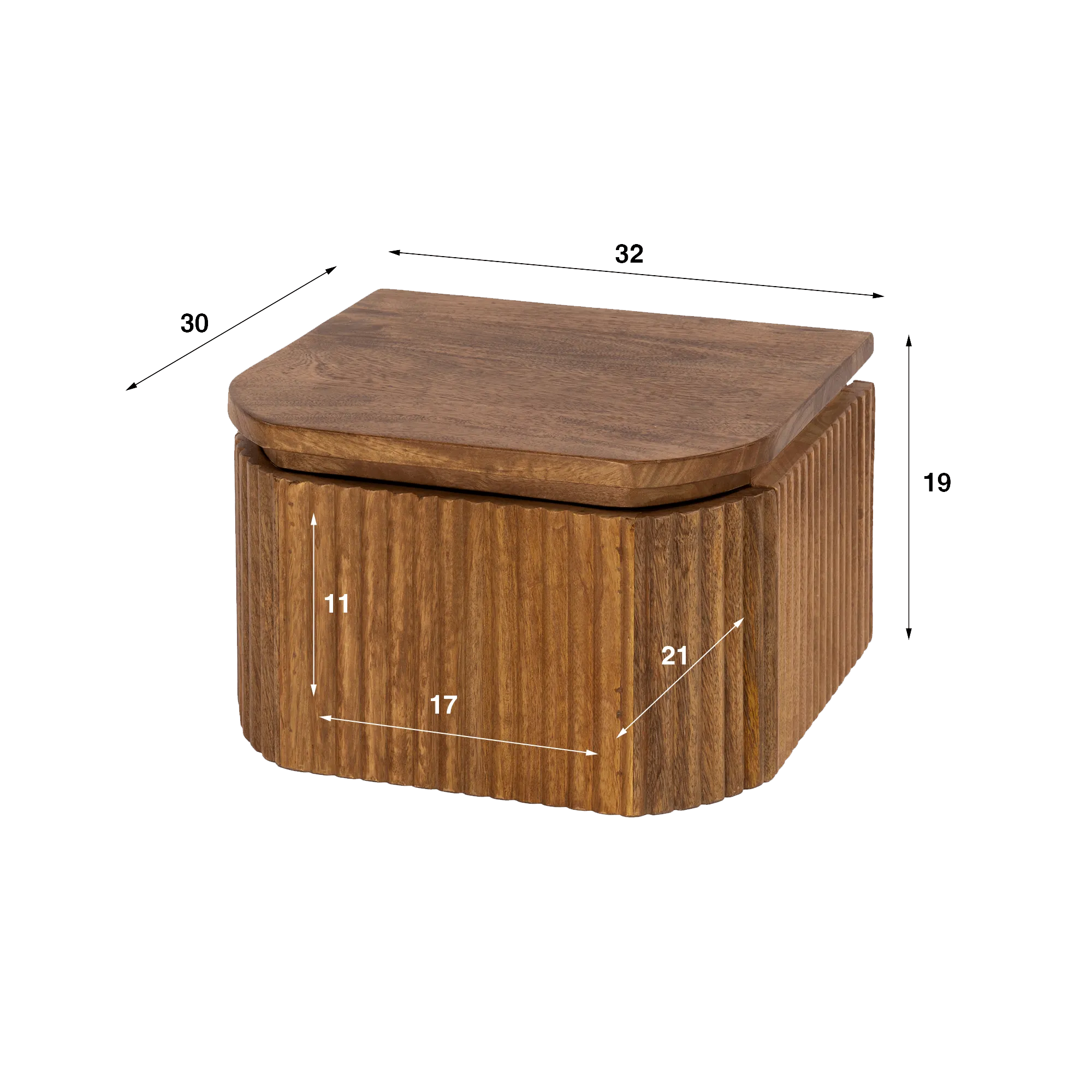 Met zijn compacte afmetingen van 32 cm breed, 30 cm diep en 19 cm hoog past de Wave XS massief houten nachttafel moeiteloos in zowel kleinere slaapkamers als ruimere interieurs. De geïntegreerde lade, waarvan de geribbelde voorzijde het ambachtelijke werk benadrukt, biedt een praktische opbergruimte om boeken, een bril of persoonlijke spullen binnen handbereik te houden. De nuttige hoogte van de lade maakt het mogelijk het essentiële van het dagelijks leven op te bergen zonder de finesse van het meubel te compromitteren.