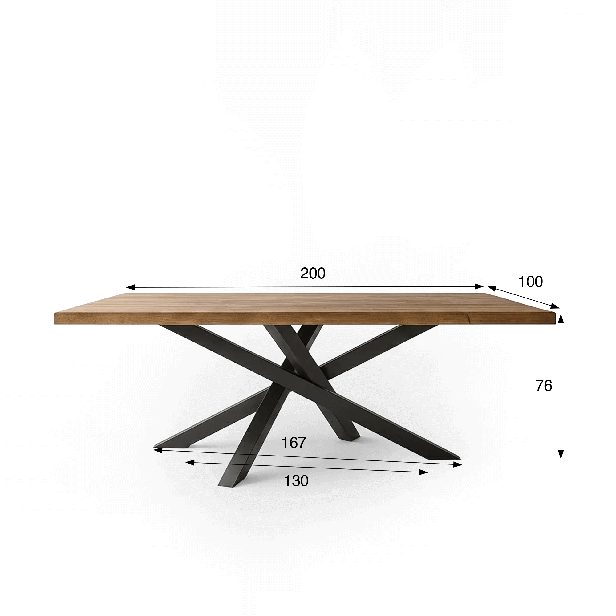 Massieve houten eettafel met metalen mikado-poot 200 cm