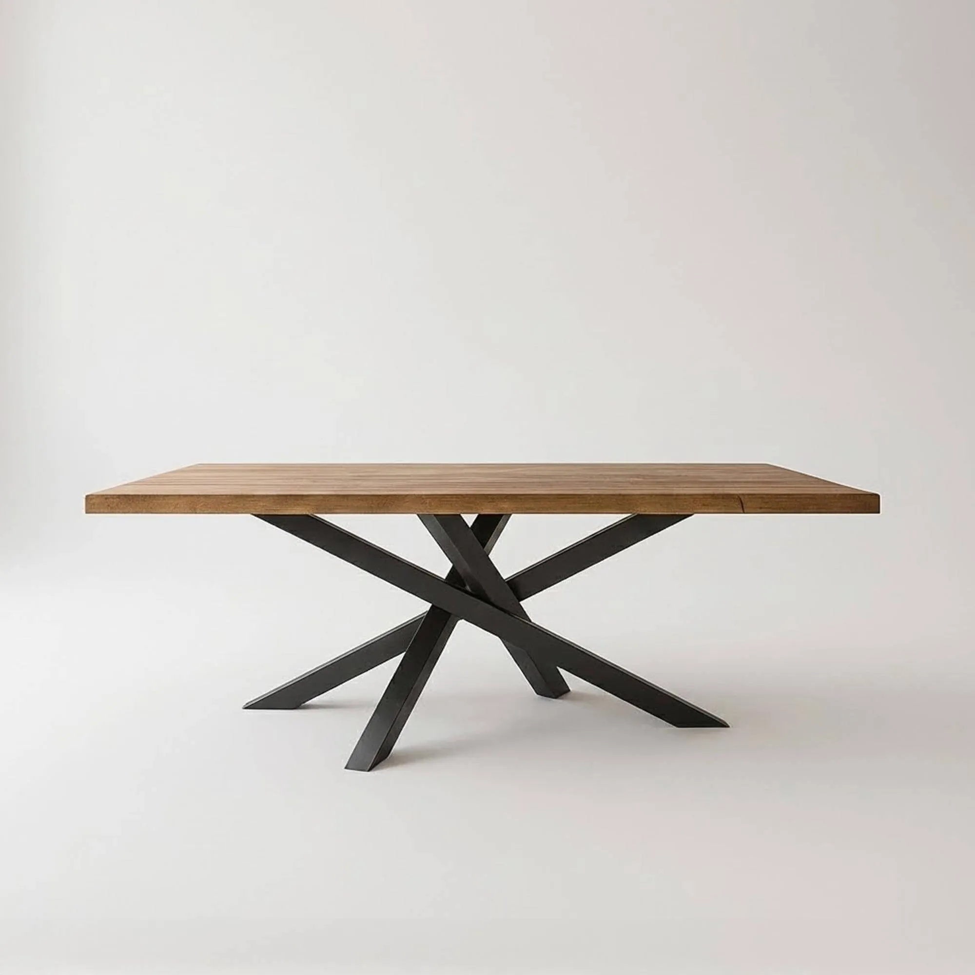 Massieve houten eettafel met metalen mikado-poot 220 cm