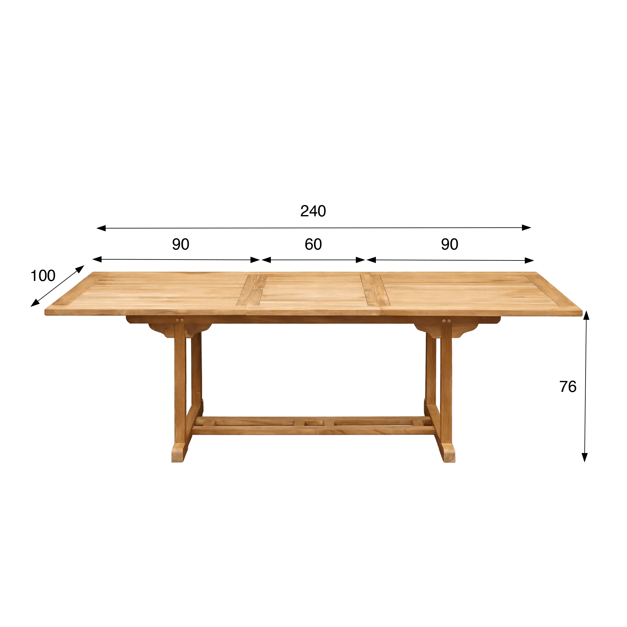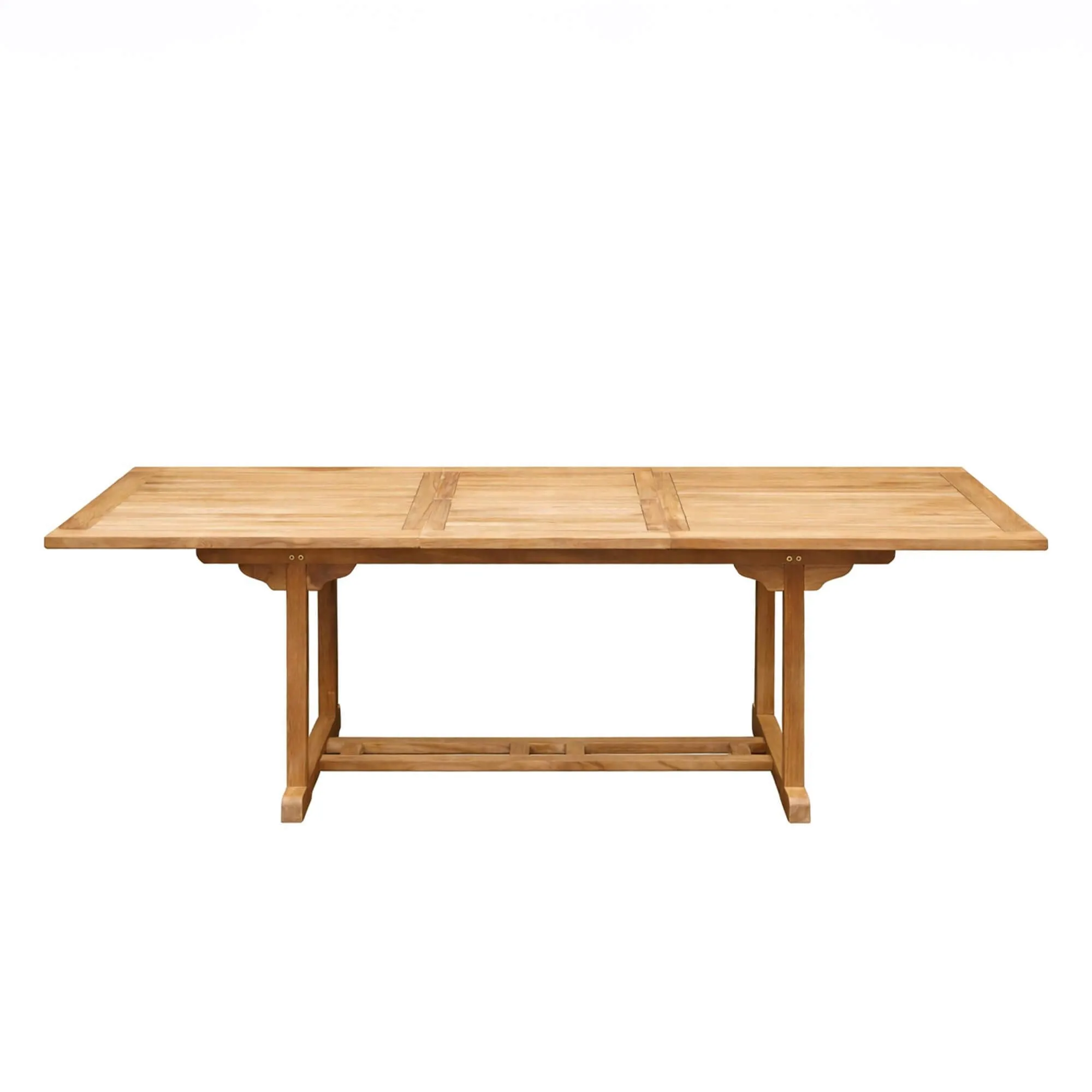 De bewerking van het massieve hout op deze uitschuifbare tuintafel in teakhout onthult een fijne nerftekening en natuurlijke nuances die elk stuk uniek maken. Bij aanraking voelt het oppervlak zacht en geruststellend aan, terwijl de stevige structuur duurzame stabiliteit biedt. De verhoudingen werden zorgvuldig bestudeerd om de visuele harmonie te bewaren en tegelijk optimaal comfort rond de tafel te garanderen, ongeacht de configuratie.