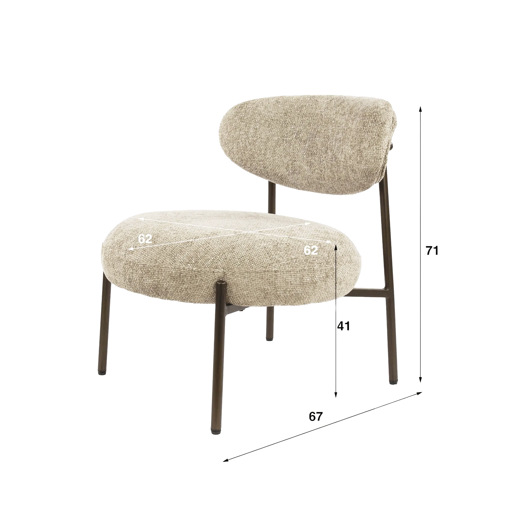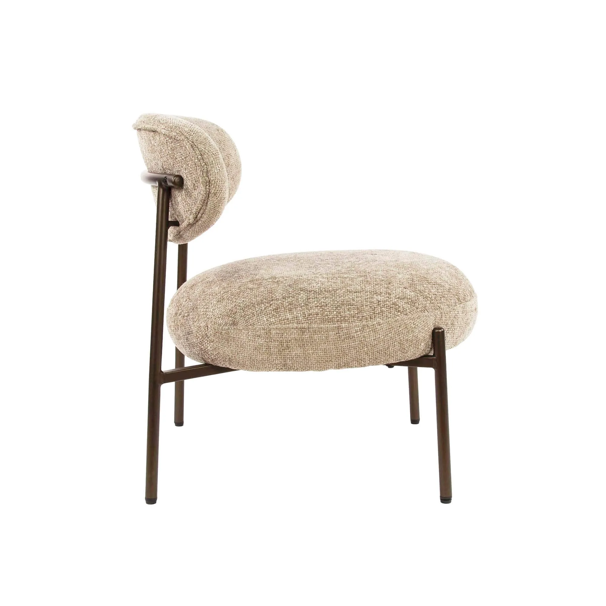 Het metalen onderstel zorgt voor een mooi gecontroleerd contrast. Fijn getekend ondersteunt het het geheel discreet en garandeert het tegelijk een uitstekende stabiliteit. We hebben bewust gewerkt aan die balans tussen textiel en metalen structuur, zodat je een loungefauteuil voor de woonkamer krijgt die zowel robuust als visueel licht aanvoelt. De verzorgde afwerking van de poten onderstreept het tijdloze karakter van het model, dat trends moeiteloos overstijgt zonder aan moderniteit in te boeten.