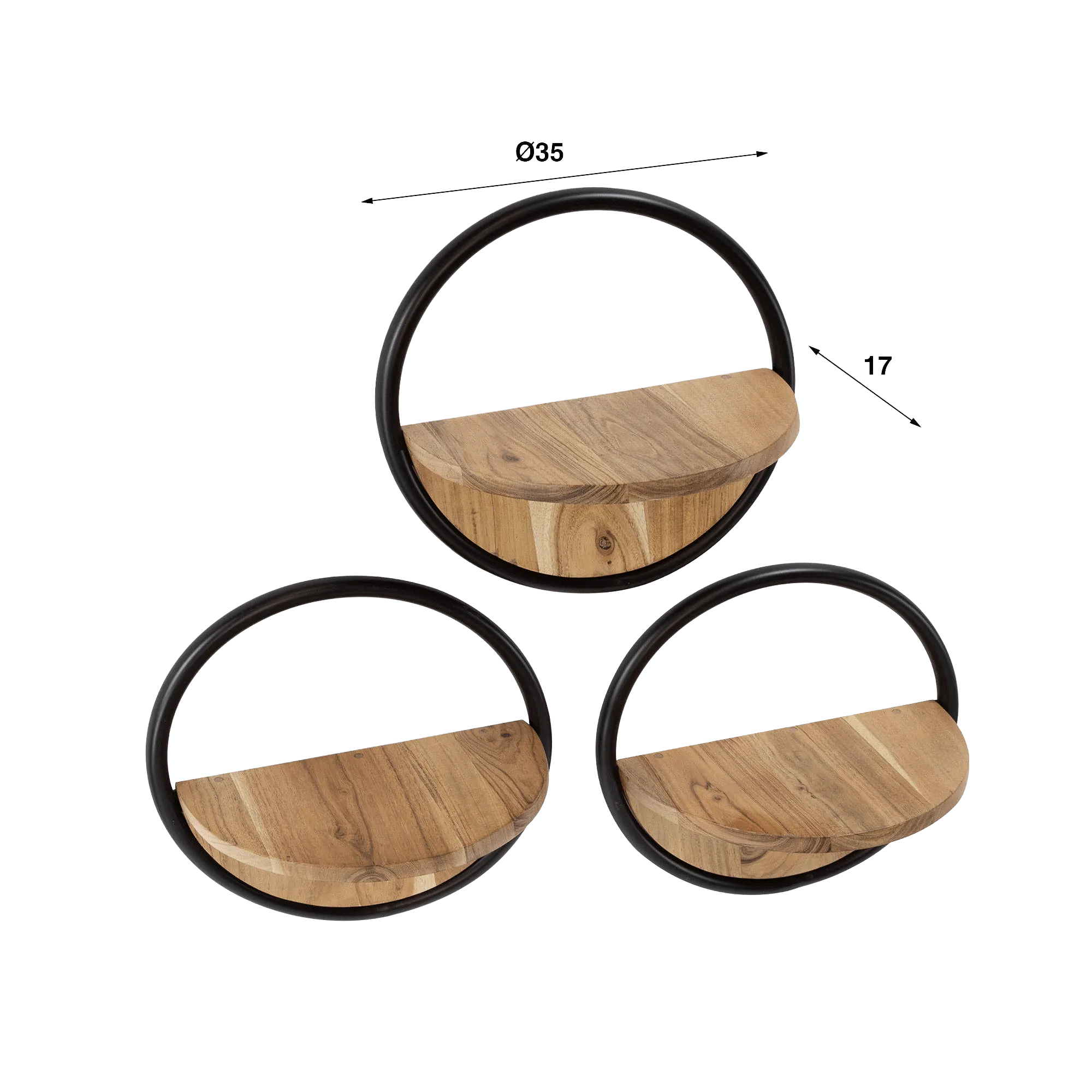 Industriële ronde wandplank met houten legplank (set van 3) - Urban