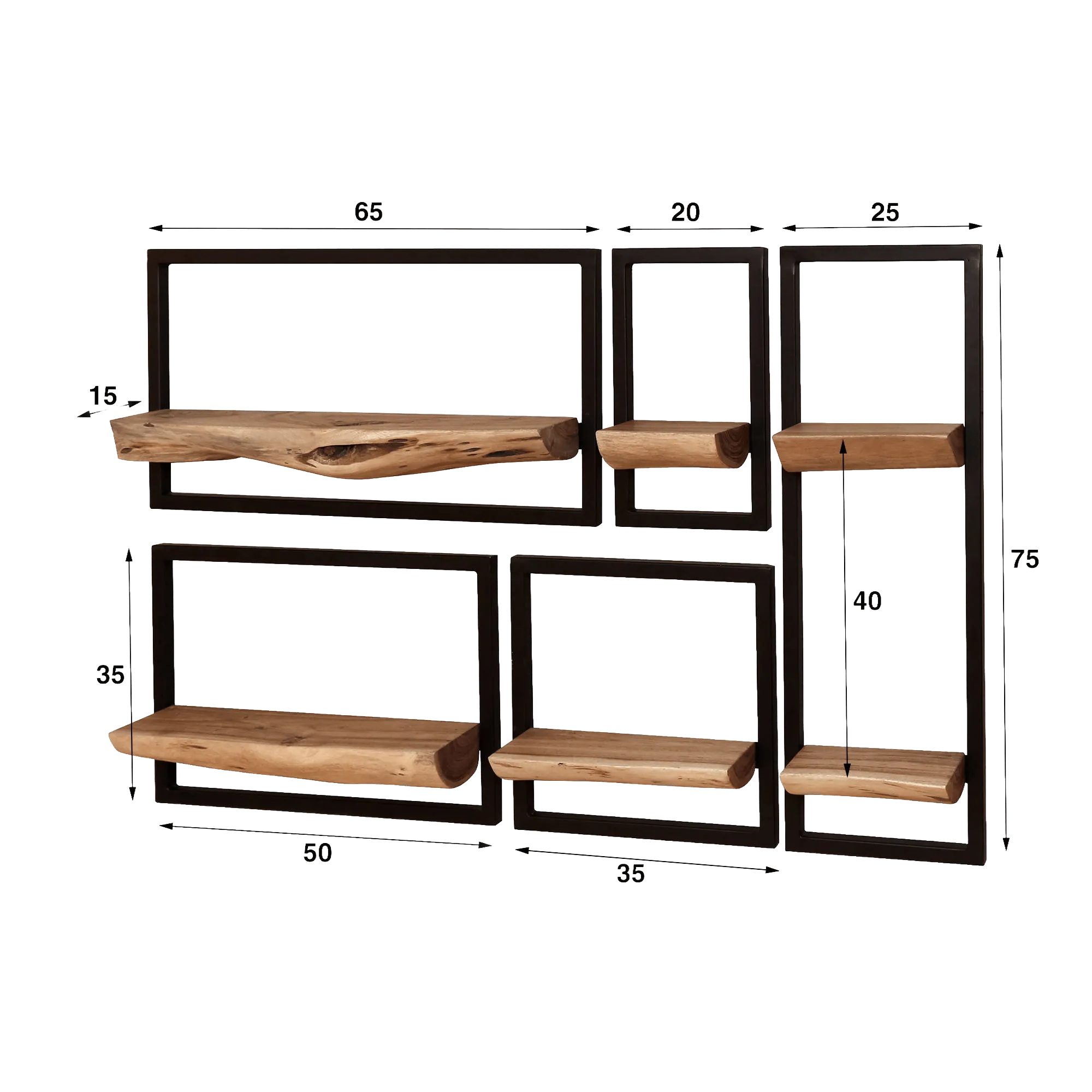 Industriële wandplank in hout en metaal (set van 5) – Frame