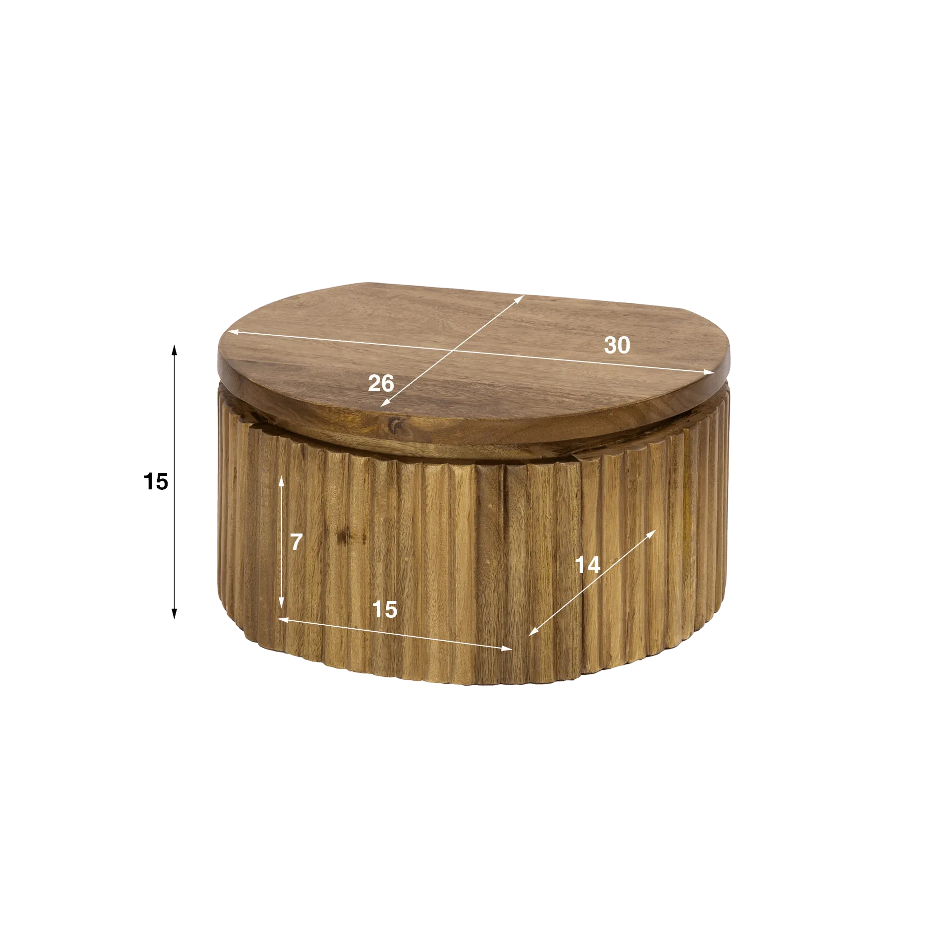Voor dit zwevende nachtkastje in natuurlijk hout met lade kozen we voor massief mangohout, omwille van zijn warme nuances en levendige nerftekening. Elk stuk toont natuurlijke variaties die het verhaal van het materiaal vertellen, terwijl het tegelijk een uitstekende duurzaamheid in de tijd garandeert. Het ambachtelijke werk van de gecanneleerde fronten brengt visueel ritme en vangt subtiel het licht, wat de natuurlijke uitstraling en het authentieke karakter van het meubel versterkt. Bij aanraking voelt het hout zacht en licht gestructureerd aan, een herinnering aan zijn ruwe en edele oorsprong.