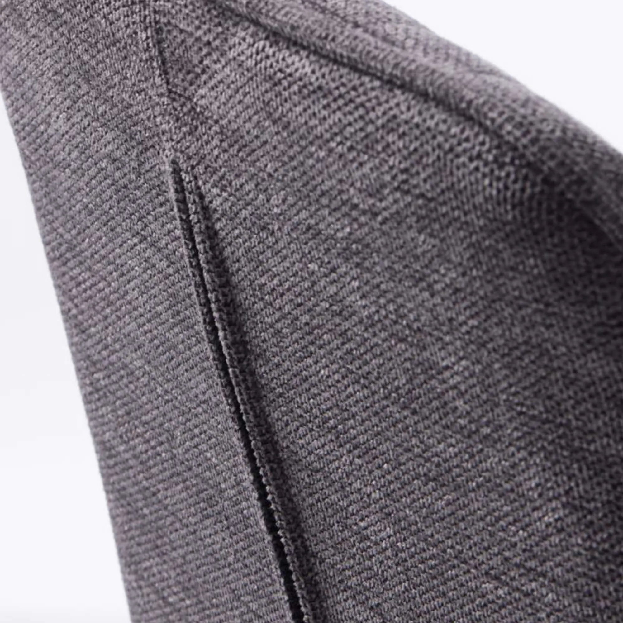 Bij het ontwerpen van de eetkamerstoel in antracietkleurige stof Nolan Stripe hebben we gewerkt aan een omhullend silhouet, waarbij de licht geïntegreerde armleuningen de curve van de rugleuning verlengen om een comfortabele ondersteuning te bieden zonder het geheel zwaarder te maken. De gevoerde zitting, ontworpen voor dagelijks gebruik, zorgt voor een aangename houding tijdens lange maaltijden of gezellige momenten rond de eettafel. De Oekotex-gecertificeerde stof, samengesteld uit 100% polyester, biedt een uitstekende slijtvastheid met een Martindale-waarde van meer dan 30.000 cycli, wat duurzaamheid en een mooie levensduur garandeert. Het gewicht van 380 g/m² en de goede weerstand tegen pilling (4-5) tonen de zorg waarmee de materialen werden gekozen.