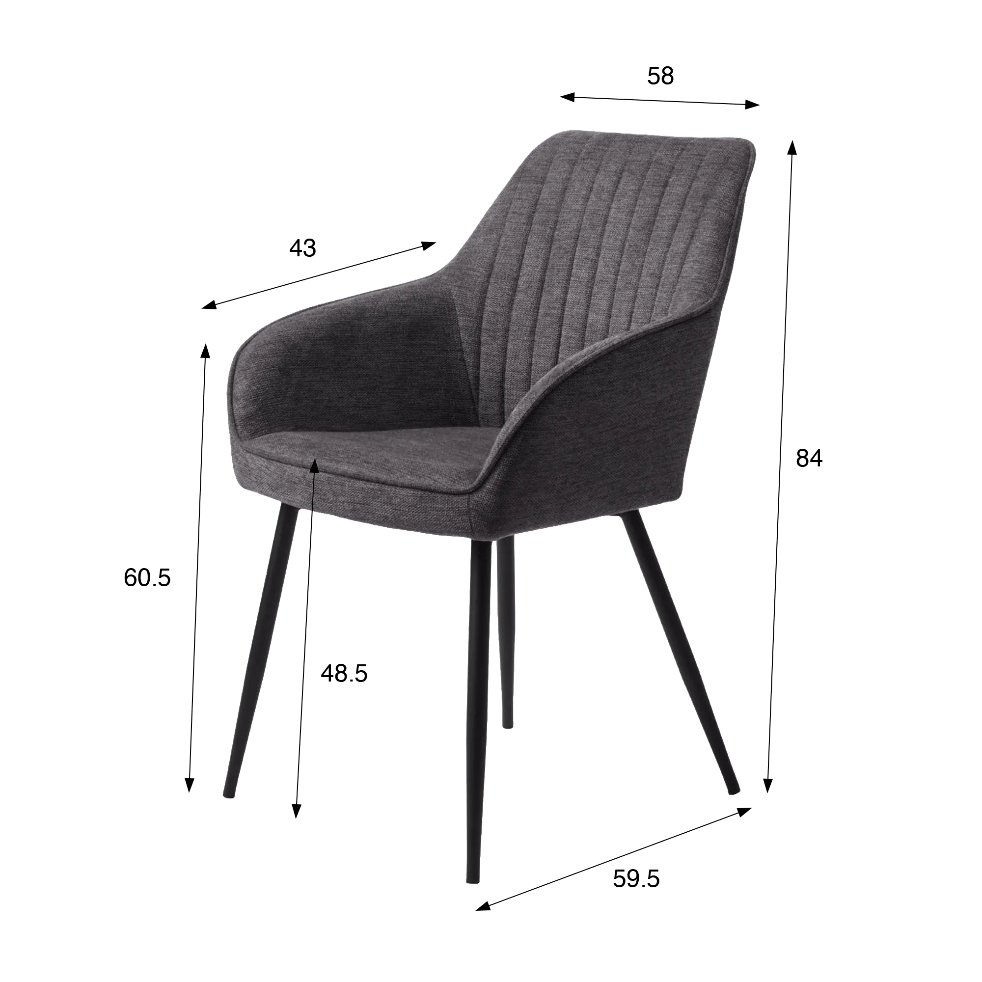 Eetkamerstoel in antracietkleurige stof - Nolan Stripe