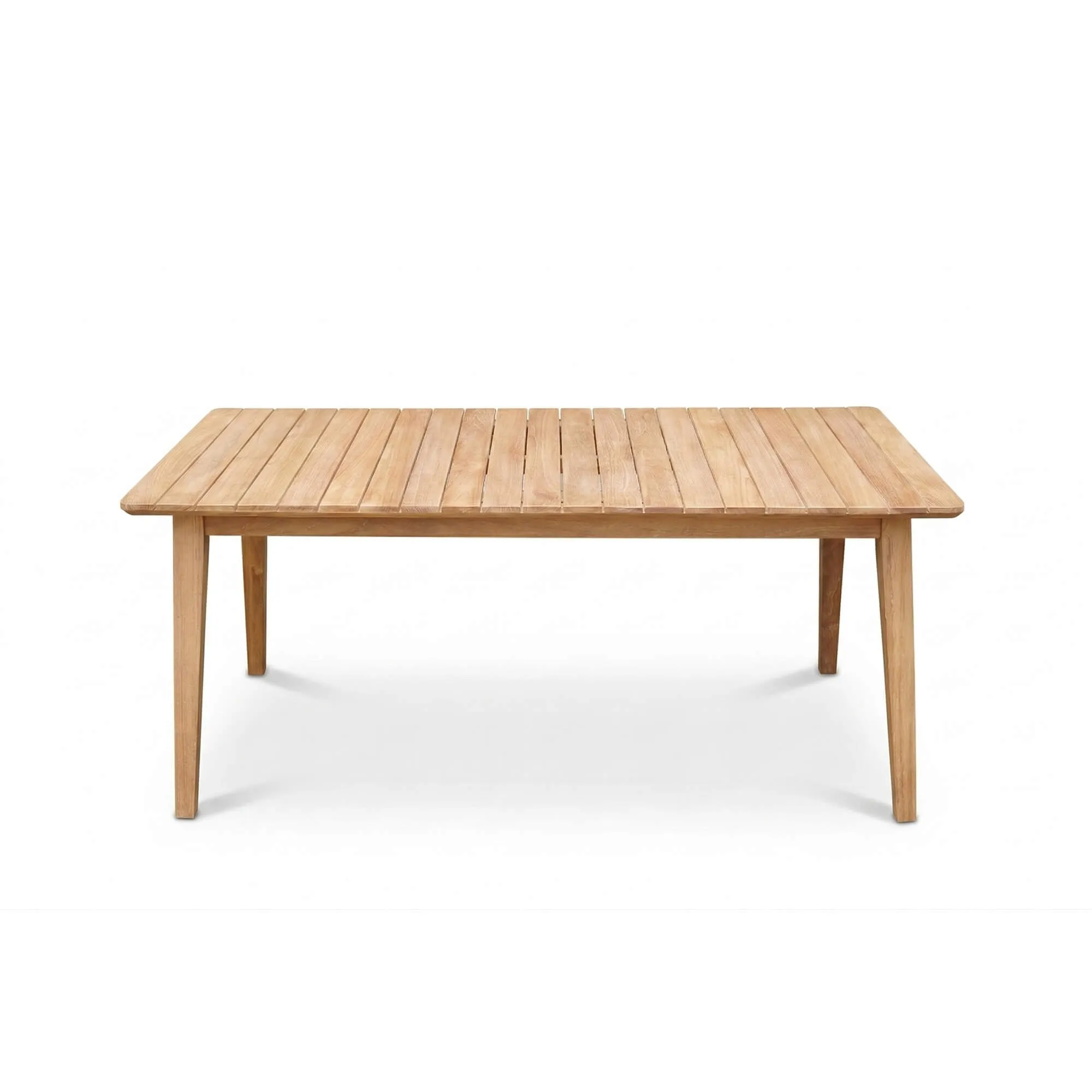 De tuintafel Reito onderscheidt zich door haar blad met fijn verdeelde latten, een keuze die tegelijk esthetisch en functioneel is, omdat regenwater er op natuurlijke wijze door kan wegvloeien en tegelijk de warme houtnerf van het teak zichtbaar blijft. Haar evenwichtige lijnen geven een rustige uitstraling aan de buitenruimte, terwijl de royale afmetingen ervoor zorgen dat zes gasten comfortabel kunnen plaatsnemen. Teak staat bekend om zijn natuurlijke weerstand tegen vocht en wisselende weersomstandigheden, wat het tot een bijzonder geschikt materiaal maakt voor duurzaam buitengebruik.