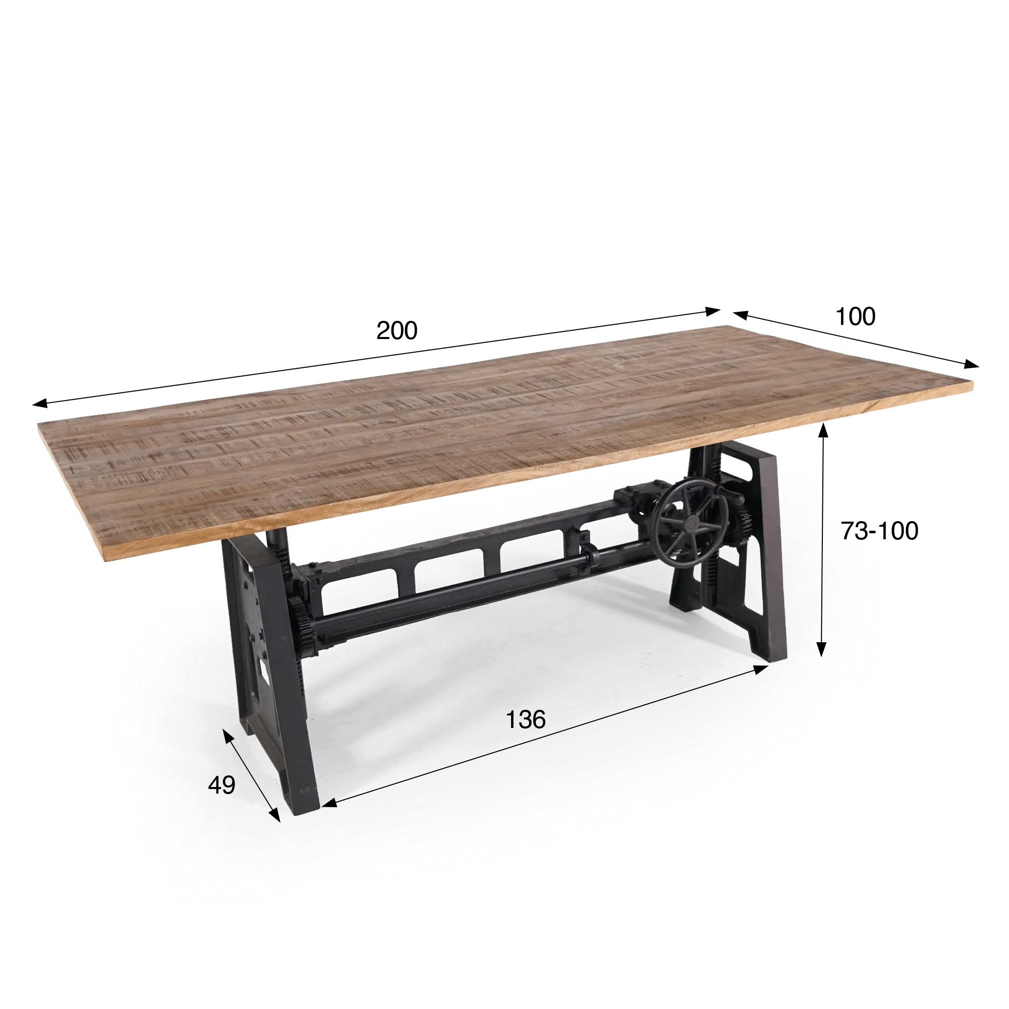 Een echt kunstwerk in de industriële stijl, deze eettafel verstelbaar in de hoogte zal perfect zijn voor grote feesten en voor het dagelijkse gezinsleven. Verkrijgbaar in 2 maten, 200 cm of 220 cm, zult u in staat om 8 tot 10 personen in comfort te ontvangen.